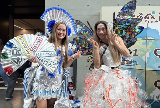 非凡娛樂光電永續有感節登場,由菲律賓籍團隊同仁打頭陣,推出別具巧思的《永續達文西》藝術展,以廢棄塑膠、瓶蓋、寶特瓶、紙箱全手工自製「減塑藝術」。