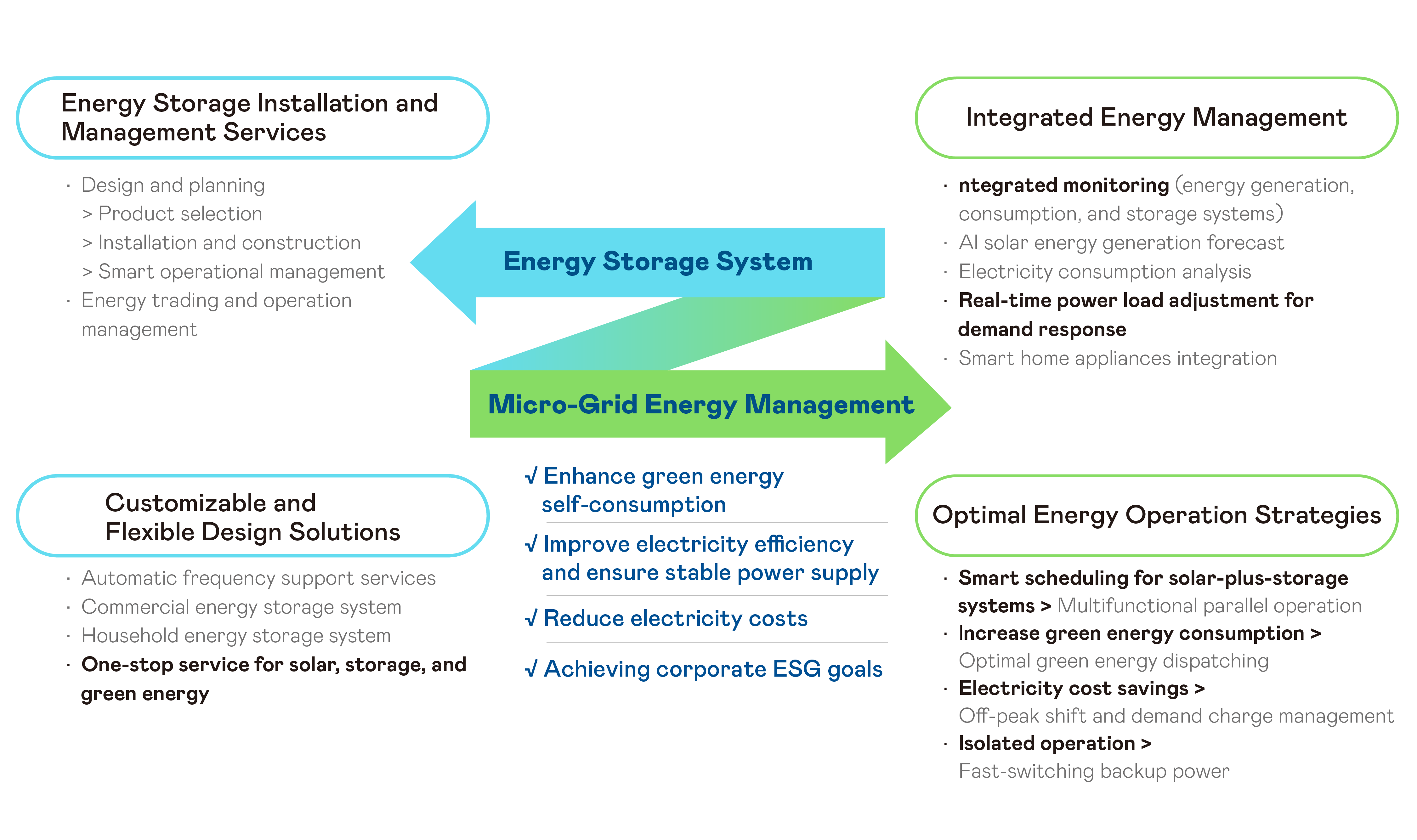 The residential energy management system can be applied to community-shared electricity or independent homes. It integrates rooftop solar panels, allowing self-consumption of green energy and providing fast-switching backup power for power outages. In addition, it can be combined with smart energy management software to maximize the benefits of whole system.
