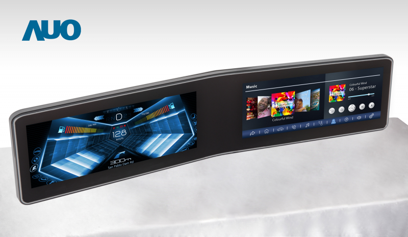 AUO’s V-shaped curved vehicle cockpit display joins a cluster and a CID panel by direct bonding lamination |